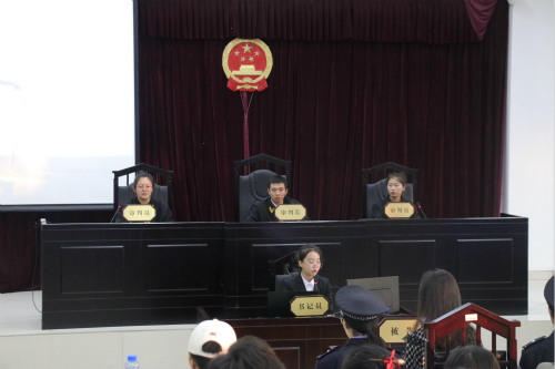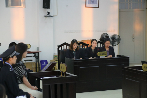 活动开始,主持人李洋同学介绍了庭审流程。通过一段根据本案拍摄的微电影向大家介绍了案件的经过。随着清脆的法槌声,审判长宣布开庭,模拟法庭正式开始。