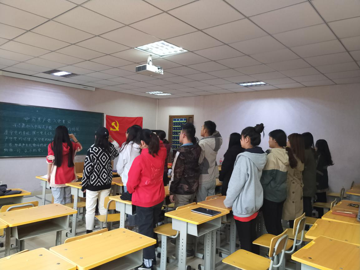 为扎实推进“不忘初心、牢记使命”主题教育,艺术学院学生党支部于10月16日下午在共同教室4开展了以重温入党誓词为主题的党日活动。