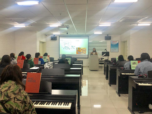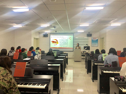 为扎实开展好“不忘初心、牢记使命”主题教育,贯彻落实学院以“四个一”为载体,为身边群众至少办一件实事好事的部署,10月22日下午,艺术学院的何艺源老师代表艺术学院钢琴教研室教工党支部为北京市大兴区保利茉莉公馆小区中从事幼师学前教育的老师们、音乐爱好者及一些年轻群众进行了一次普及音乐知识的教学和唱响红歌活动。