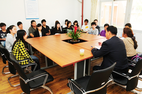 下午2:00,专家组与各系党总支书记、学生代表进行座谈。专家组详细询问了学院体育活动的开展情况,并就对体育工作的建议与师生代表交流。