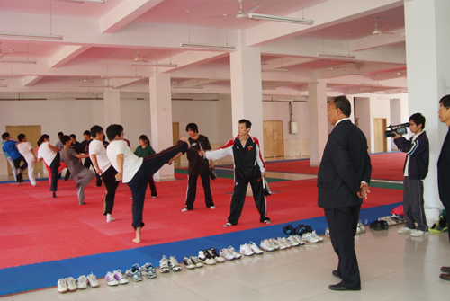 关于体育教育教学工作情况介绍后,专家组实地参观了体育教研室、资料室、器材室,考察了羽毛球、乒乓球、跆拳道、武术以及瑜伽课的现场教学情况。专家组对老王论坛