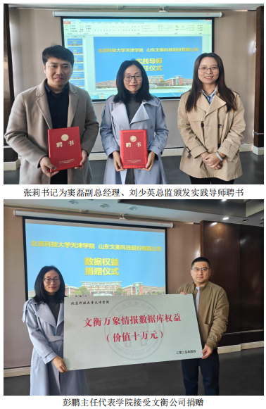 副院长刘晓明、“产学研”办公室主任彭鹏,法律系主任朱京安、常务副主任邢晓晖、党总支书记张莉、实践教学指导中心主任刘国平、办公室主任李春光及王瑶、董祺等法律系教师代表,山东文衡科技股份有限公司董事长夏傲福、技术副总窦磊、文衡万象平台总监刘少英、行政经理柴正东出席签约仪式。
