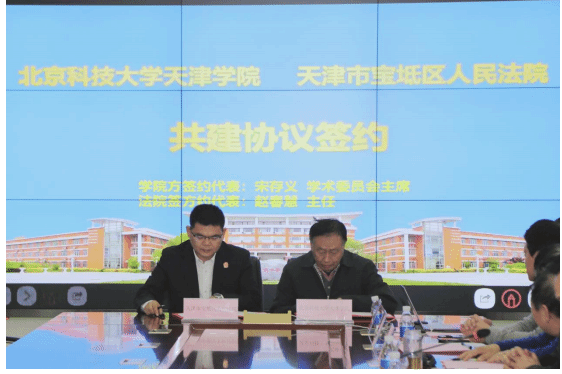 院长助理、学术委员会主席宋存义和宝坻区法院政治部主任赵春慧作为双方代表,共同签署“合作共建协议”。