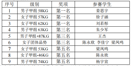 教师史健、罗继浩、李济宏指导学生荣获3个第一名、3个第三名、3个第五的优异成绩,参赛的10名学生获得女子甲组团体第四名,男子甲组团体第五名,史健老师获得优秀教练员称号,刘若彤、王杰获得优秀运动员荣誉称号。获奖情况如下: