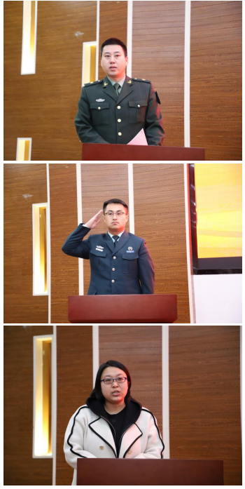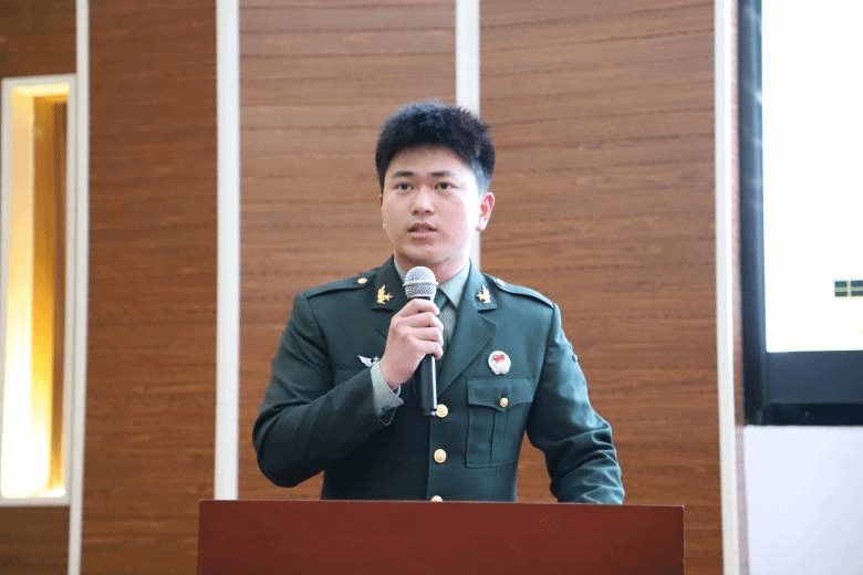 退役大学生代表、戎程研究会主席王忆翱同学从入伍动机、当兵经历、摸爬滚打的历练、潜移默化的影响四个方面分享从军经历,鼓励学弟学妹们勇往直前,追逐强军梦想。