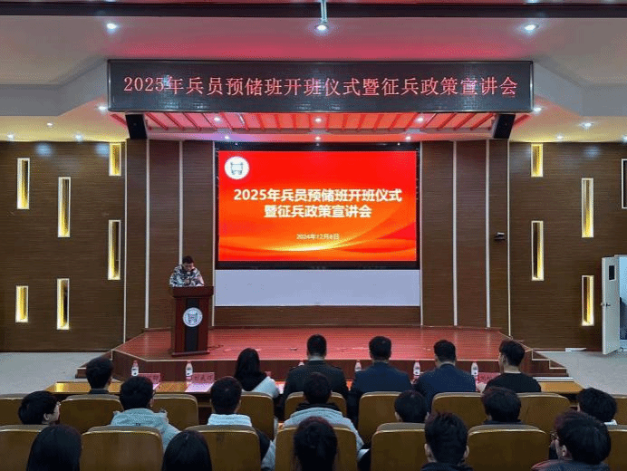 成功召开2025年兵员预储班开班仪式暨春季征兵政策宣讲会,宝坻区人武部徐宝辉参谋、王宇干事、退役军人事务局刘叔韬同志、学院武装部李雲啸老师参加,宣讲会由武装部刘武辉老师主持,各院系200余名师生参会。