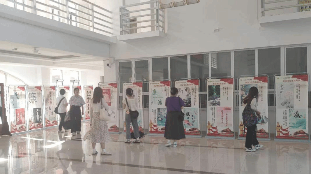 创新形式,开展“清廉文化进校园,风清气正润心田”活动。于5月至6月组织师生党员“接力读条例”,领导干部带头参加、中层干部积极参与、师生党员踊跃报名,最终推选共140人参与到活动中。开展2024年廉洁文化作品征集活动,推选优秀作品类型涵盖海报、漫画、书法、征文、摄影等形式共计百余件。征集的优秀作品以海报的形式在12教进行展出。最后,将以专家组评分和线上投票两种形式相结合方式,推选出本次活动的获奖作品。