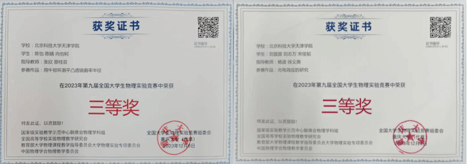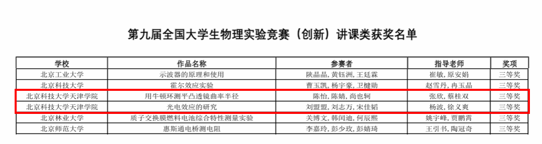 众多学子中选拔出的6名优秀选手组建两支代表队参赛。指导老师与团队成员精心设计比赛选题,合理规划讲课流程,合理分工协同作战,经过两个多月的努力,陈怡、陈婧、尚也轲的作品《用牛顿环测平凸透镜曲率半径》,刘盟盟、刘志万、宋佳韬的作品《光电效应的研究》均获得三等奖。
