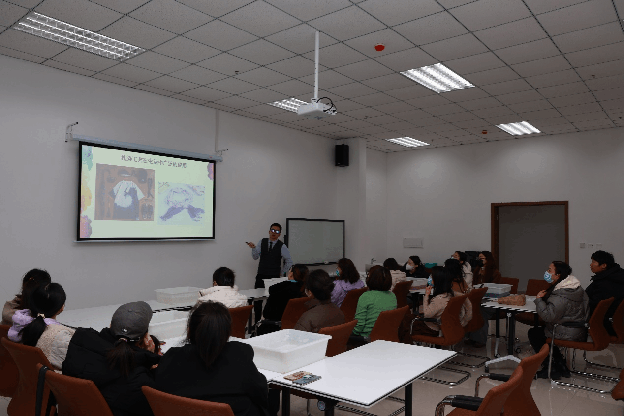 为全面贯彻党的二十大精神,弘扬传统民族文化,丰富女教师文化生活,激发对传统技艺的兴趣,2023年12月1日,在教师发展中心励学坊,由学院工会和图书馆联合举办“巧手来扎染”女工活动,工会主席郭雅娟、女工委员班岚、图书馆参考咨询部主任吴素舫等近40名教职工参加此次活动。