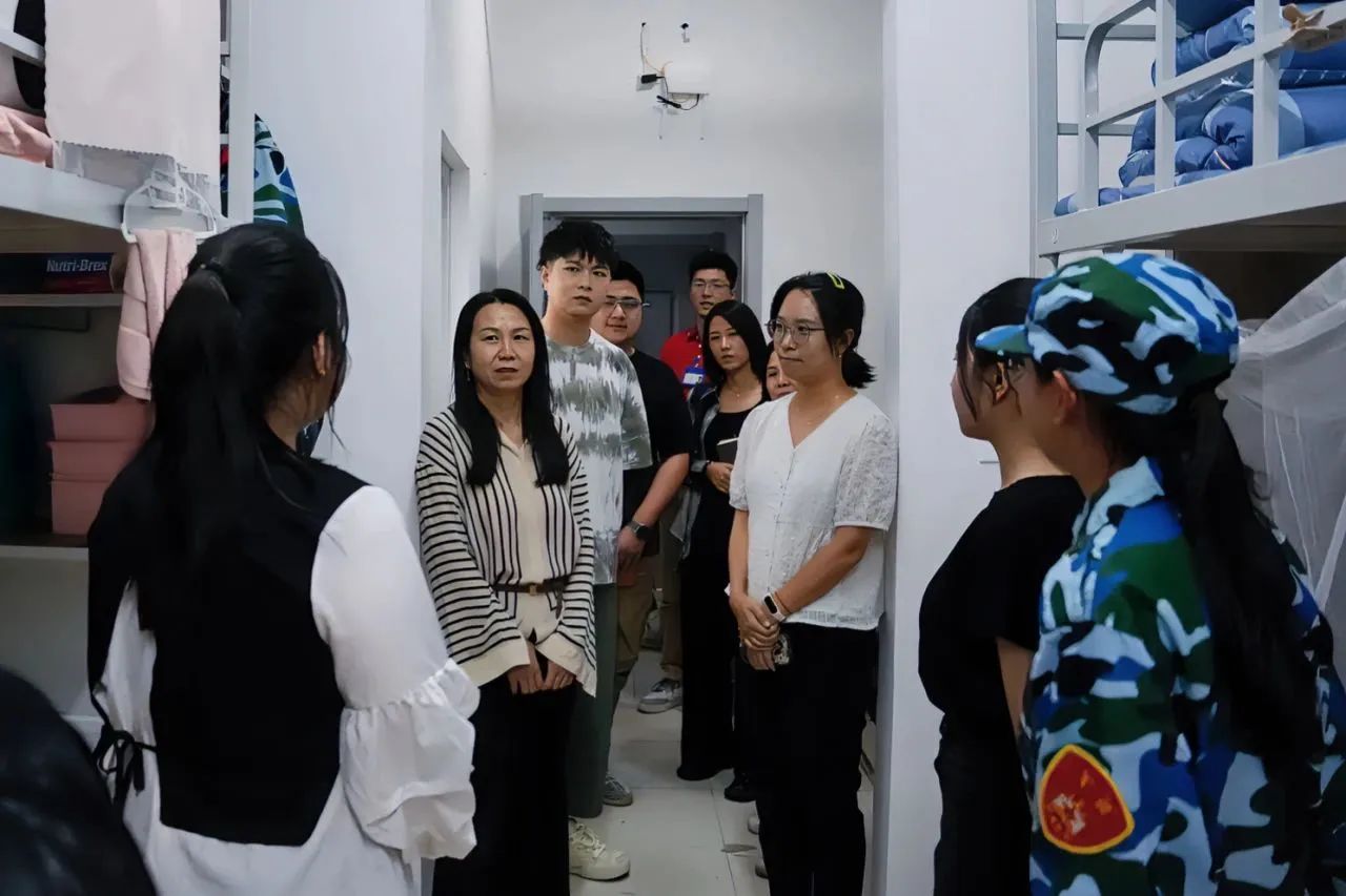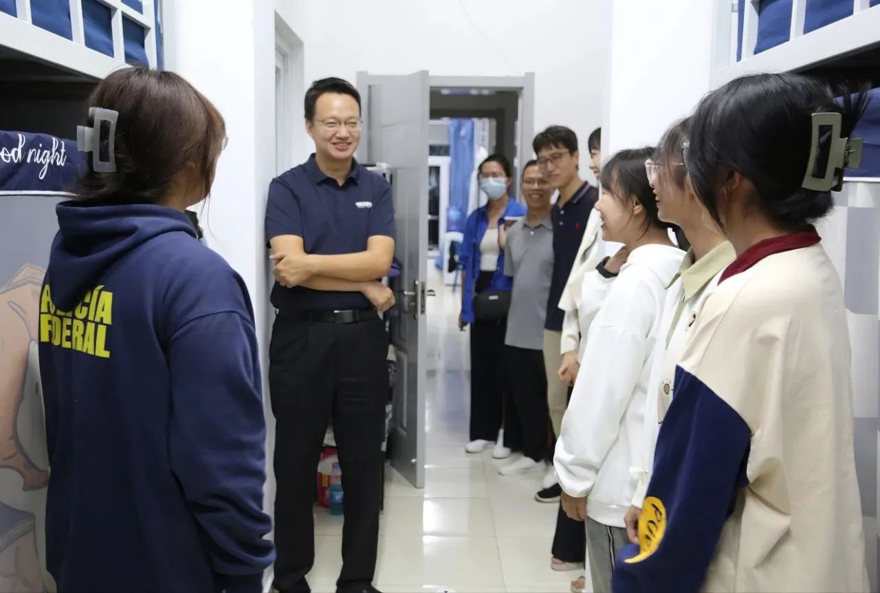 在新生宿舍,学院领导与新生进行了亲切交谈,详细询问了他们来到学校后的适应情况以及对住宿和生活环境的感受。学院领导表达了对新生的殷切期望,希望同学们能够尽快适应从高中到大学的角色转变,学会独立生活和自主学习,并尽快融入丰富多彩的大学生活。