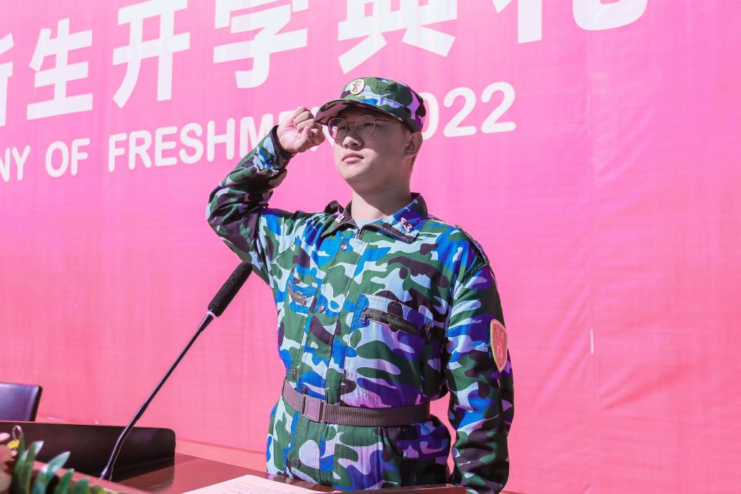 石沙沙同学代表2022级新生发言,她号召全体新同学们敢于无畏向前,勤于开拓进取,乐于奋斗奉献,要承担起时代赋予的责任,心怀请党放心、强国有我的铮铮誓言,秉承清澈的爱、只为中国的深情厚意,以新的语言、新的行动、新的风貌去开启一段新的旅程。