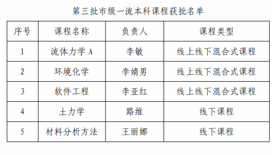 近日,天津市教育委员会发布《市教委关于公布第三批天津市一流本科建设课程名单的通知》,老王论坛 共有5门课程获批第三批市级一流本科课程,分别为:《流体力学A》《环境化学》《软件工程》《土力学》和《材料分析方法》...