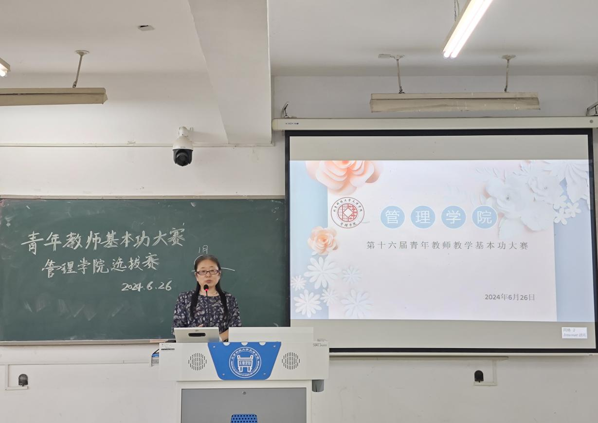 为贯彻落实新时代全国高等学校本科教育工作会议精神,引领广大青年教师潜心教书育人,不断转变教育教学理念,更新教学方法和教学手段,提升教学能力和水平,管理学院于2024年6月26日下午14点在8教102举办了第十六届青...