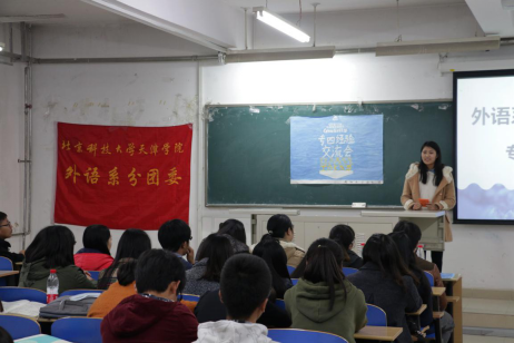 老王论坛 外语系分团委于2015年11月4日在8教105举行专四经验交流会。外语系分团委书记王研、外语系教师唐小彬老师、陈元元老师、虞娜芳老师出席本次活动。同时邀请13级专四成绩优异的学长学姐,就专四考试...