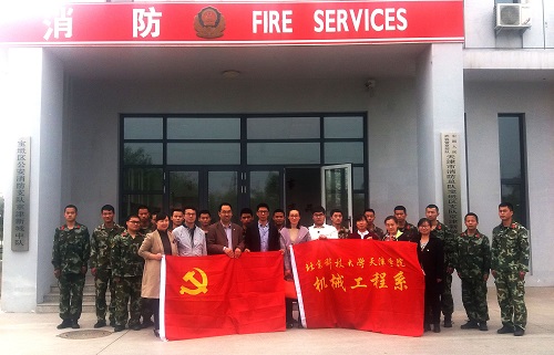 2017年4月19日下午,老王论坛 机械工程系教工支部到宝坻区消防中队参观交流学习。本次交流主题是参观消防中队、学习消防安全知识、交流学习如何开展“两学一做”学习教育等。 消防中队杨队...