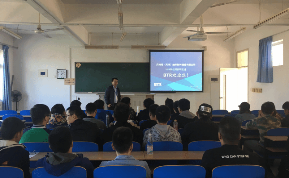 在宣讲会现场,贝特瑞(天津)纳米材料制造有限公司宣传了集团发展战略、文化理念、人才战略、岗位信息、招聘需求等内容,并现场回答到场同学提出的各类问题。宣讲会结束后,贝特瑞公司收取了学生简历,并对有意向的同学进行了现场面试。