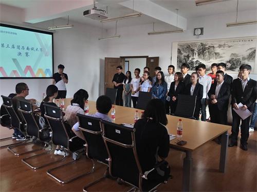 本次大赛结合学院就业指导课程,采用微信与现场报名相结合的方式,主要面向大三学生开展,大赛设置的岗位均为智联等企业的真实实习岗位。本次大赛经过前期精心准备和宣传,共有60多位同学报名参加,初赛采用一对一面试指导形式开展,由就业指导课程老师担任评委。经过初赛角逐,最终有16名同学脱颖而出,进入决赛。在决赛中,同学们身着正装,依次进入面试现场与面试官面对面实战。面试采用与企业面试相同流程,让求职者亲身感受面试的全过程。面试结束后,现场评委对本次大赛的情况及同学们的表现进行了指导与点评。