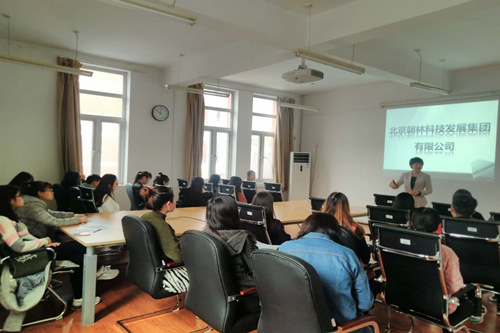 宣讲过程中,李莲蓉女士从该公司的经营业务、用人模式、员工培训以及招聘岗位和待遇等方面做了全方位的深入介绍。从她的介绍中了解到:北京朝林科技发展集团有限公司(以下简称朝林集团)成立于2001年10月,总部坐落于北京经济技术开发区核心商务区朝林广场,是一家集投资、置业、生态、养生、酒店管理、物业管理、信息科技于一体的多元化企业集团。朝林集团实行以三级责任主体为基础的集团化管理体制和运行模式,下设多家子公司及分公司,主要有:北京朝林鑫源投资有限公司、北京朝林置业有限公司及其各分公司、北京朝林泓泽物业管理有限公司及其各分公司、北京朝林松源酒店管理有限公司、万宁鑫源酒店管理有限公司、北京朝林生态科技发展有限公司、北京金飞阁信息技术有限公司等。各子、分公司多行业并进发展,各业务板块之间相互支撑、相互协同,形成了科学、健康、持续的发展格局。