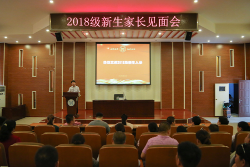 王院长代表学院全体教职工对2018级新生及家长的到来表示热烈的欢迎与感谢。并向新生家长们详细介绍了学院的历史发展、专业设置、师资建设、办学成果等情况。王院长希望学生们要学会独立生活,独立面对困难,尽快适应大学生活。同时,希望家长们能根据孩子的实际情况给予一些引导,与学院共同努力,帮助学生生尽快融入大学生活,帮助他们成长成才。