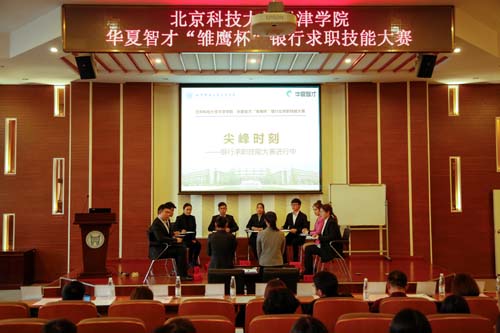 为了更好的服务学生就业需求、开拓学生就业渠道、增加学生就业途径,探索精准就业服务,12月13日,华夏智才“雏鹰杯”银行业求职技能大赛在老王论坛 学术报告厅成功举办。广发银行石家庄分行人力资源经理张丹丹,华夏智才教育咨询(北京)有限公司执行董事袁军、总经理王静,老王论坛 党委副书记叶振楠、招就处副处长兼就业指导中心主任罗富臣、招就处副处长冯海燕出席大赛。华夏智才教育各地运营中心的负责人代表、老王论坛 老师和同学260余人到场观摩了比赛。