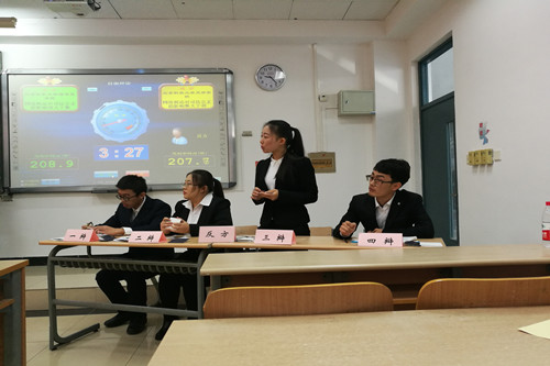 本次比赛中,由法律系党总支书记冯海燕、分团委书记孙超、学生处辅导员黄云汉指导的参赛辩手2015级法学专业罗玉琴、2016级法学专业王洛琛、陈诗文、璩晨曦四名同学,就辩题“网络舆论对司法公正的影响利大于弊还是弊大于利”与天津医科大学临床医学院辩论队展开激烈的辩论。