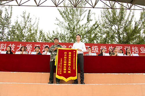 9月10日,2017级学生军训结业典礼在西操场隆重举行,天津东丽湖学生军训基地主任徐恩山,老王论坛 党委副书记叶振楠及各系党总支书记出席结业典礼。上午9时,全院2300余名新生整齐列队,在晨曦的阳光下展示两周来的军训成果。迎国旗,五星红旗在庄严的国歌声中冉冉升起,迎校旗,奏响激昂的解放军进行曲,十四个分列式方队的队员迈着整齐的步伐,昂首挺胸,气势高昂地走过主席台,用嘹亮的口号向全院师生展示两周的军训所得。随后进行的倒计时、手语操、队列展示、军体拳、三声三相、擒敌拳、歌咏表演、花样队列表演方队等军训科目汇报展示将结业典礼推向高潮,他们的口号响亮、动作整齐,现场展示赢得观众阵阵掌声,他们用优异的表现向全院师生展现了刚强坚韧的精神。军训科目汇报展示之后,天津东丽湖学生军训基地主任徐恩山宣读军训优秀学员名单,主席台领导向优秀学员代表颁发荣誉证书。学院党委副书记叶振楠向承训基地赠送锦旗并做了总结讲话,他表达了对2017级新生的殷切希望和美好祝福,希望2017级新生铭记军训经历,学会做人,学会做事,积极培育和践行社会主义核心价值观,以优异的成绩迎接党的十九大胜利召开。