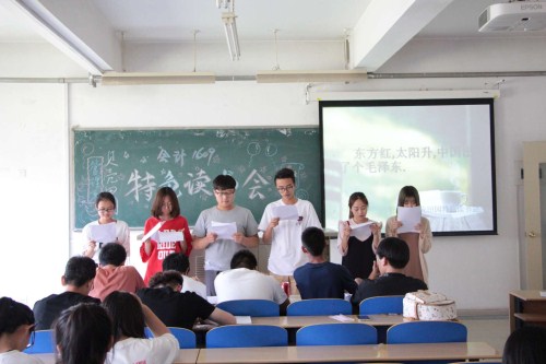 为了加强学风建设及思想政治教育,组织和引导学生学会思考、感悟人生,营造有内涵丰富、特色鲜明的校园文化氛围,5月10日下午三点半,由管理系主办的第一届“贝壳田园读书会”于第八教学楼正式启动。财务管理1603班、会计1601班、会计1605班、会计1609班率先进行, 正式开始了为期一个月的读书会活动。