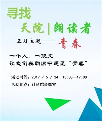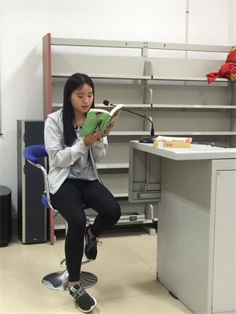 5月24日下午三点半,初夏的阳光洒在北科天院,社科馆音像室里传来朗朗读书声。伴随着震耳欲聋的掌声,第一期以“青春”为主题的“天院朗读者”正如火如荼的进行着。图书馆3位老师和来自金融、法学、会计等专业的30名同学参加了这次活动,其中20名同学登台朗读。所涉书籍题材广泛,有小说、散文和诗歌等。同学们真情流露地朗读着各自喜欢的作品,虽基调不同,情感有异,但每部作品的文字都充满力量,让朗读者通过声音诠释了相应的情感。