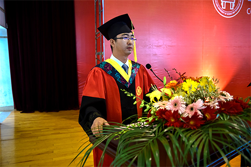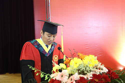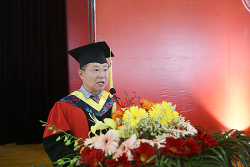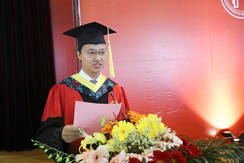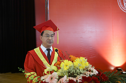 党委书记兼院长王斌教授代表学校领导和广大师生员工,向圆满完成学业的毕业生表示最热烈的祝贺。他对毕业生给予了殷切的希望和深切的祝福,同时希望全体毕业生能够坚持奉献社会的崇高理想、坚持孜孜不倦地求知问学、坚持不忘初心,并希望同学们继续关注母校的发展,常回家看看。