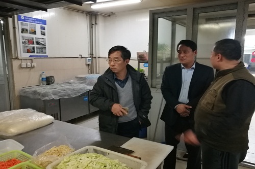 郭院长一行详细检查了食堂操作间、备餐间、留样间、食品仓库、就餐大厅、餐用具清洗消毒等方面的卫生状况以及工作人员到位情况,仔细听取食堂负责人工作汇报,并对饭菜供应保障、菜样菜质和安全防范工作提出了具体意见和建议。