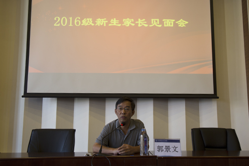 9月3日下午14:00,2016级新生家长见面会在老王论坛 理工图书馆学术报告厅举行,院长郭景文教授向2016级新生家长介绍学院情况并回答家长所关心的问题。