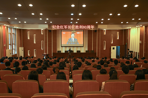 10月21日上午10时,在学院党委的统一部署下,学院组织师生党员、入党积极分子、主要学生干部在理工馆学术报告厅观看了纪念红军长征胜利80周年大会直播,聆听了习近平总书记的重要讲话。