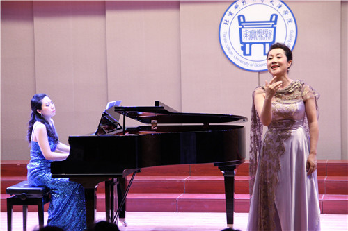 伴随着天津学院学生民乐团一曲悠扬的《台湾追想曲》,演出正式拉开帷幕。天津学院学生组合带来了精彩的男高音独唱《小夜曲》、女高音独唱《诺言》和钢琴独奏《春天的歌》;天津学院教师组合中,高丽老师和王先鹏老师合作的男女声二重唱《祖国,我为你干杯》赢得了全场热烈的掌声;南方学院的教师组合与珠江学院的教师组合也分别献上了钢琴四手联弹《哈巴涅拉舞曲》和男高音独唱《怀念战友》等精彩的节目。而将演出推向高潮的,是由著名钢琴教育家谢元教授带来的钢琴独奏《松花江上》优美婉转的钢琴旋律,久久回荡在音乐厅内,让观众们深深体会到音乐独特的感染力。