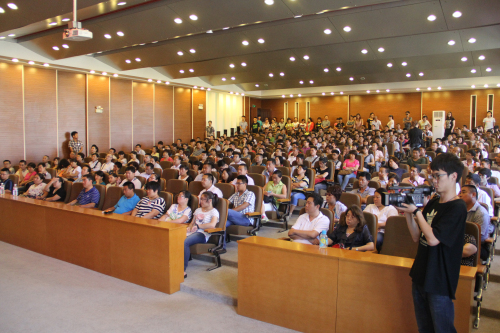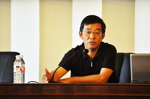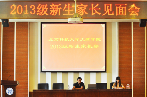 图书馆学术报告厅召开,院长郭景文教授向2013级新生家长介绍学院情况并回答问题。