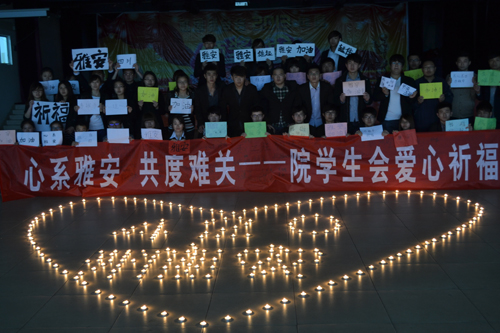 灾难无情人有情,四川雅安地震之后,院学生会举行了“心系雅安”爱心祈福活动,希望通过这种方式向灾区人民送去温暖与祝福。