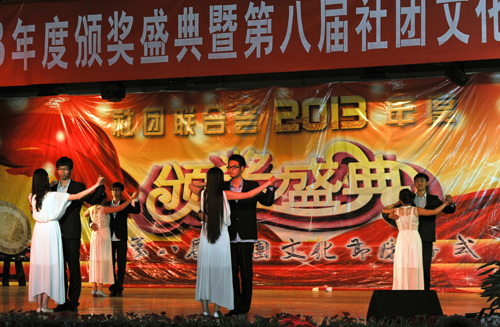 5月21日晚19时,社团联合会2013年度颁奖盛典暨第八届社团文化节闭幕式在学生活动中心二楼隆重举行。团委书记罗富臣、经济系党总支书记迟铁、团委副书记孟祥瑜以及团委各部部长和各系分团委书记出席了本次活动。