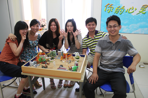 为了达到深入交流的效果,根据各系的实际需求,我们分别以不同的形式和内容设计活动。6月7日,法律系与外语系联合举办的心理沙龙以团体沙盘体验的形式展开。