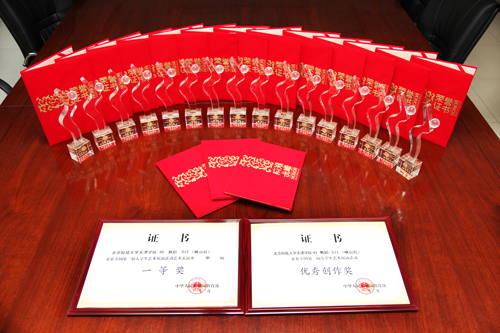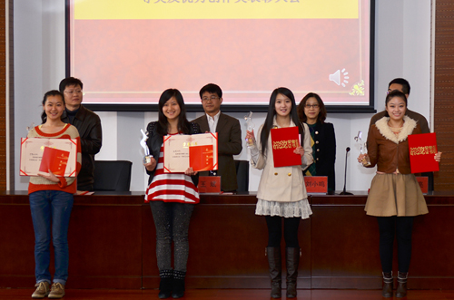 学院领导为获奖师生颁发证书和奖杯