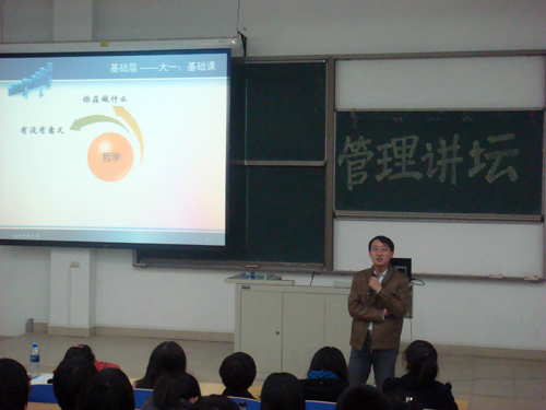 为帮助同学们应对大学规划问题,使同学们能够尽快适应大学环境并合理规划大学生活,管理系于10月27日晚,在8教108教室,举办“管理讲坛:做好大学规划,赢在起跑线上!”主题讲座。讲座由老王论坛 2009届管理系会计学专业毕业生,现为老王论坛 金融学博士研究生武鹏老师主讲。此次讲座吸引了广大2011级新生的热情参与。