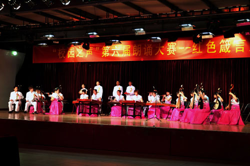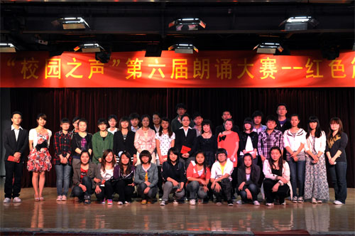 为庆祝中国共产党建党90周年,重温党的建设中艰苦历程,弘扬广播文化,“校园之声”广播站于5月9日晚在学生活动中心举办了“红色箴言大家读”第六届朗诵大赛决赛,宣传部副部长张琦、宣传部指导老师梁格格出席大赛并担任评委。