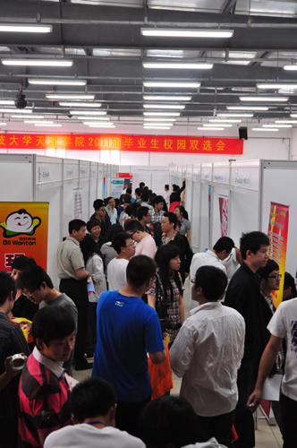 就业指导中心在活动中心举办2011届毕业生双选会,来自天津、北京、河北等地共64家用人单位应邀参加了此次双选会。