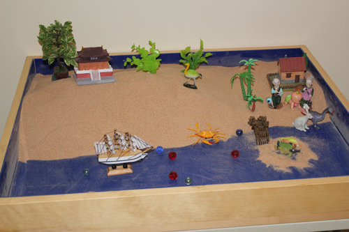 沙盘治疗是目前应用广泛的一种治疗方法,通过在沙盘中摆放玩具,构建内心世界,达到内在心灵的领悟和治愈。沙盘治疗不仅广泛应用于学生的适应问题、人际关系不良、情绪问题的体现和化解,而且能够在培养自信与健全的人格、发展想象力、创造力等方面发挥积极的作用。团体沙盘治疗更能够呈现团体的互动状况,增进团体的凝聚力和团体成员间的沟通交流。“一粒沙里看出一个世界;一朵野花里有一个天堂;把无限放在你手里,永恒在瞬间收藏!”英国诗人勃莱克的诗句可以形象地概括沙盘治疗的魅力。