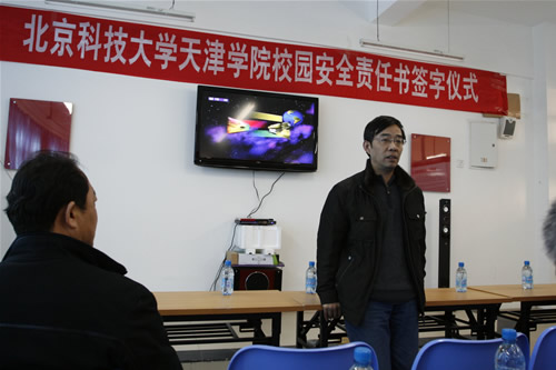 为切实做好安全保卫工作,认真落实安全工作责任制;加强师生法制观念和安全意识教育;保持学院稳定,坚决避免发生重大安全事故,天津学院于2010年3月10日下午两点在6教消防展厅举行了2010年度安全工作责任书签字仪式。学院院长郭景文,副院长曹连东,财务总监肖祖刚及各部门中层领导干部参加仪式。