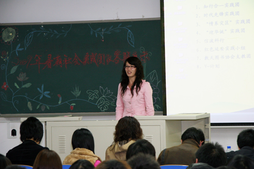 2009年暑期团队社会实践答辩展示会在9教303室举行。团委副书记罗富臣、李静雯、张琦、各系分团委书记及团委各部长参加了答辩展示会并担任评委,团委实践部部长潘柏夷主持。本次评选根据实践主题、实践任务完成情况、活动形式、实践报告质量、实践影响力及宣传号召力、团队PPT制作及现场演说演示等方面进行综合评定。来自学院各社团和各系的15个暑期社会实践团队参加本次答辩会,答辩团按照抽签顺序依次上台进行答辩展示,每队答辩时间为5分钟,各团队通过演讲、PPT和视频资料来展示团队的实践成果。