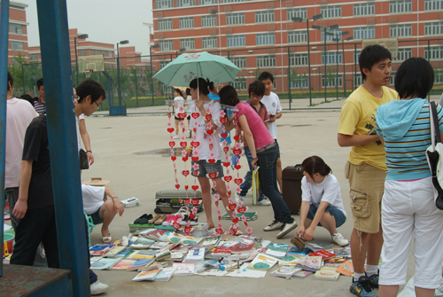 西校区校园里叫卖声此起彼伏,由团委主办的大型毕业生跳蚤市场正在火热进行,吸引了众多“顾客”驻足。