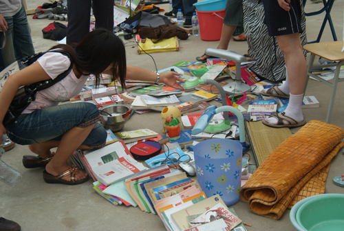 跳蚤市场上,交易的品种十分丰富,既有书籍杂志,也有生活用品,甚至还有学习笔记。不少同学在这里兴趣盎然地寻找自己需要的“猎物”,互通有无、变废为宝。一位刚刚花三块钱淘得“投资学”课堂笔记的女生说,学长的笔记比自己记得更全,马上就要期末考试了,这本“学习经”可以帮助自己更好地复习。火爆的交易让一些低年级同学来了兴趣,他们也搬来一些多余的物件“凑凑热闹、找找感觉。”
