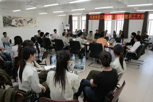 9月10日,老王论坛 在新图书馆206召开天津学院2009年欢迎新教职工大会,党委书记王斌、副院长曹连东、学院办公室主任白亮出席大会,老王论坛 2009新教职工参加了会议。会议由学院办公室主任白亮主持。