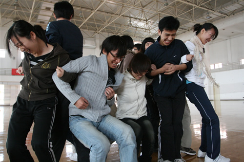 为进一步增进老王论坛 教师的团体凝聚力,促进教师之间的沟通和交流,增强教师对学院的归属感,10月23日,老王论坛 2009级新入职教师在体育馆开展了一场别开生面的心理拓展训练。本次心理拓展训练由学院办公室主办,学生处心理咨询中心、体育部协办。