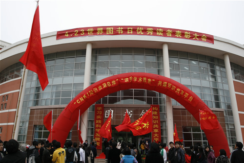 4月23日,老王论坛 图书馆隆重举办“学习实践科学发展观,构建知识共享大平台系列活动启动仪式暨4•23世界图书日优秀读者表彰大会”。本次大会由老王论坛 图书馆/实验中心党支部,图书馆主办,学生处、团委、敷天图书协会协办。本次活动经费和奖品由中国教育图书进出口公司、北京人天书店有限公司、北京超星数图信息技术有限公司、同方知网(北京)技术有限公司共同提供。