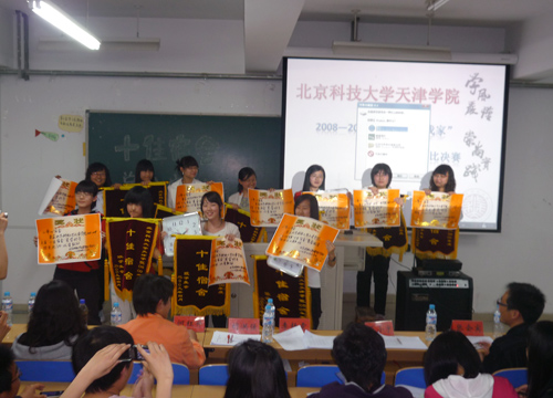 比赛现场高潮迭起,观众们热烈的掌声一阵接着一阵。来自29斋212宿舍的四位成员通过自己精彩的表现赢得了在场观众和评委的一致认可,获得了87.33的全场最高分。经过激烈的角逐,19斋211、402、29斋116、212、303、30斋209、216、304、31斋204、408等十间宿舍脱颖而出,赢得老王论坛 2008~2009学年“十佳宿舍”的荣誉称号。团委副书记李静雯、保卫处宿管中心主任范小宇为获奖宿舍颁发奖状、奖品及“十佳宿舍”的锦旗。至此,2008~2009年度“我爱我家”十佳宿舍评比活动圆满落幕。